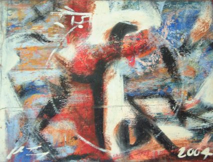 This page features the two canvases by John Tierney that we have. Since John relocated to the states we have been unable to acquire any more of his work though not for the desire. I have included a statement by John about his art below.